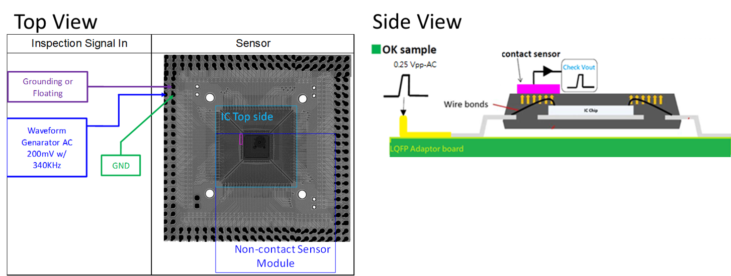 半導體 MOLDING後WB-BGA線歪斜檢測 針對如車載類需高可靠度的IC檢測。IC 封裝最終階段測試,有效檢測封裝內部導線錯位問題。採用與 Keysight 差異化的偵測方法,展現同級領先實力。強化出貨後產品可靠性,降低終端用戶端潛在故障風險。可廣泛應用於 ATV(車載產品)或需高可靠度的 IC 檢測。 WB-BGA Wire Skew Inspection after Molding Reliable IC inspection targeting automotive-grade reliability standards.Final IC package inspection to detect internal wire misalignment issuesUtilizes a differentiated detection method compared to Keysight, demonstrating industry-leading performance in its class.Enhances post-shipment product reliability, reducing failure risk at the end userApplicable to high-reliability ICs used in automotive (ATV) and similar applications